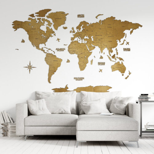 Wooden World Map with Capitals – Oak